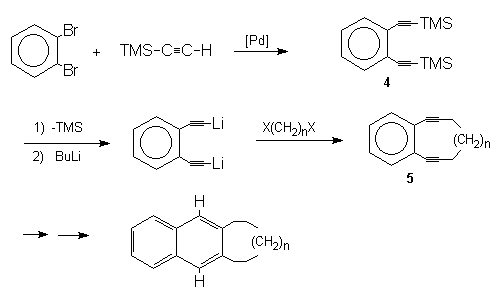 an a,w-dihalide to produce the cyclic ene-diyne (5)